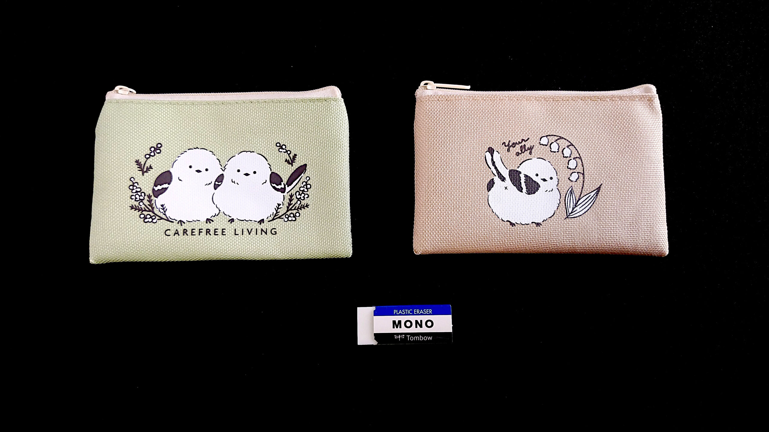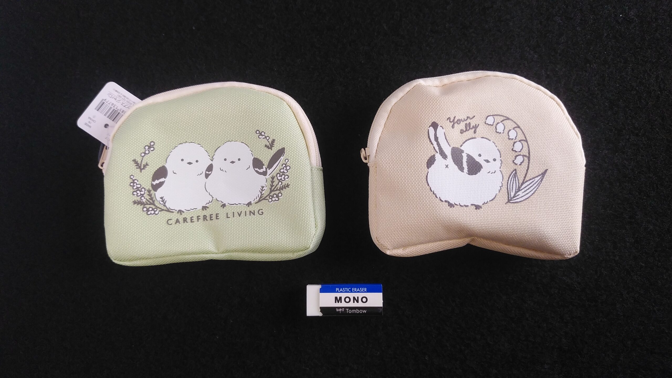 大きさがわかりやすいように、MONO消しゴムを置いているので、買う時の参考にしてください。商品については、随分更新していきます。