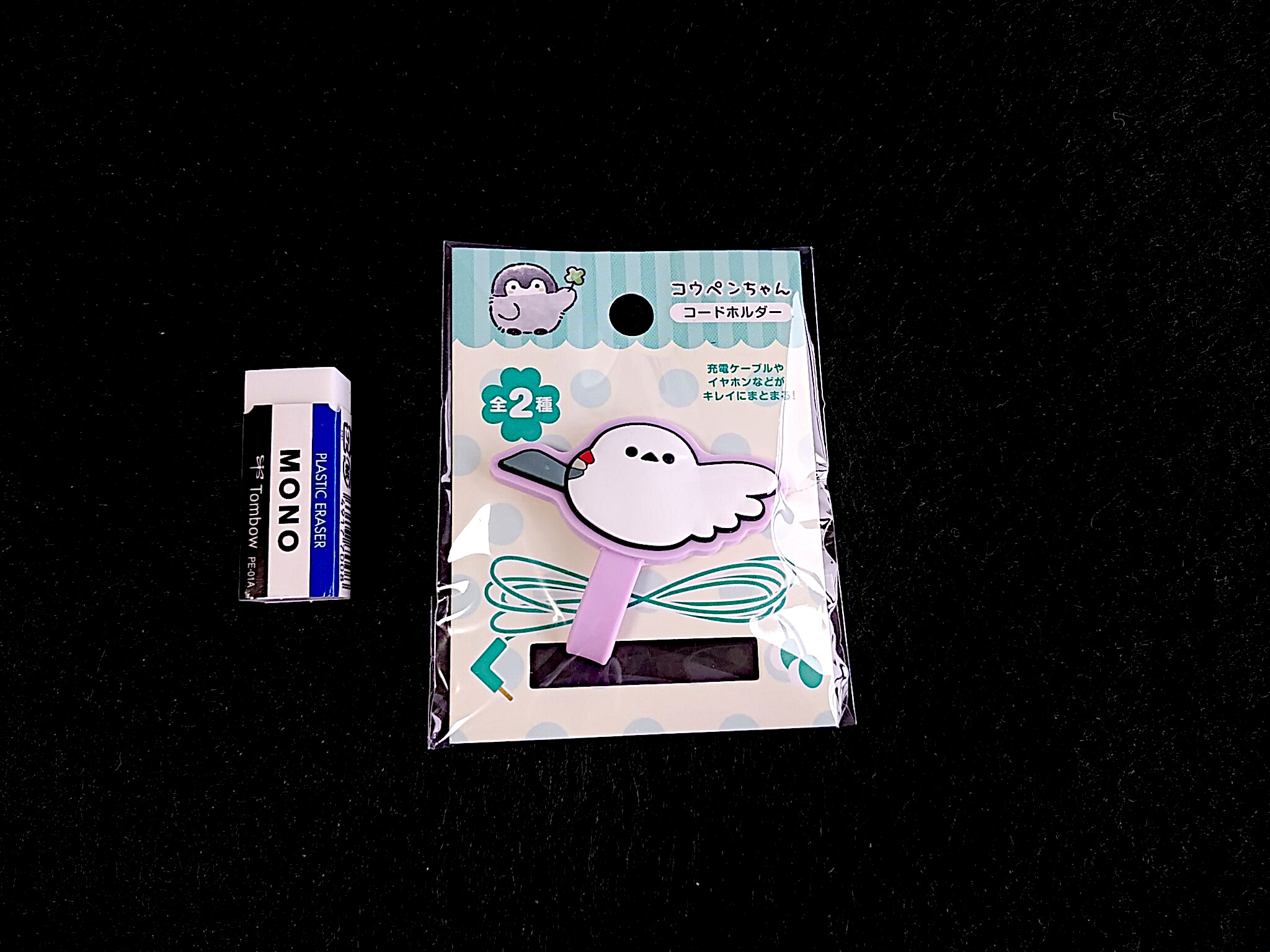 先ほどの「スマホケーブルカバー シマエナガ」と形は似ていますが、こちらはケーブルをまとめる商品で、ケーブル保護ではありません。