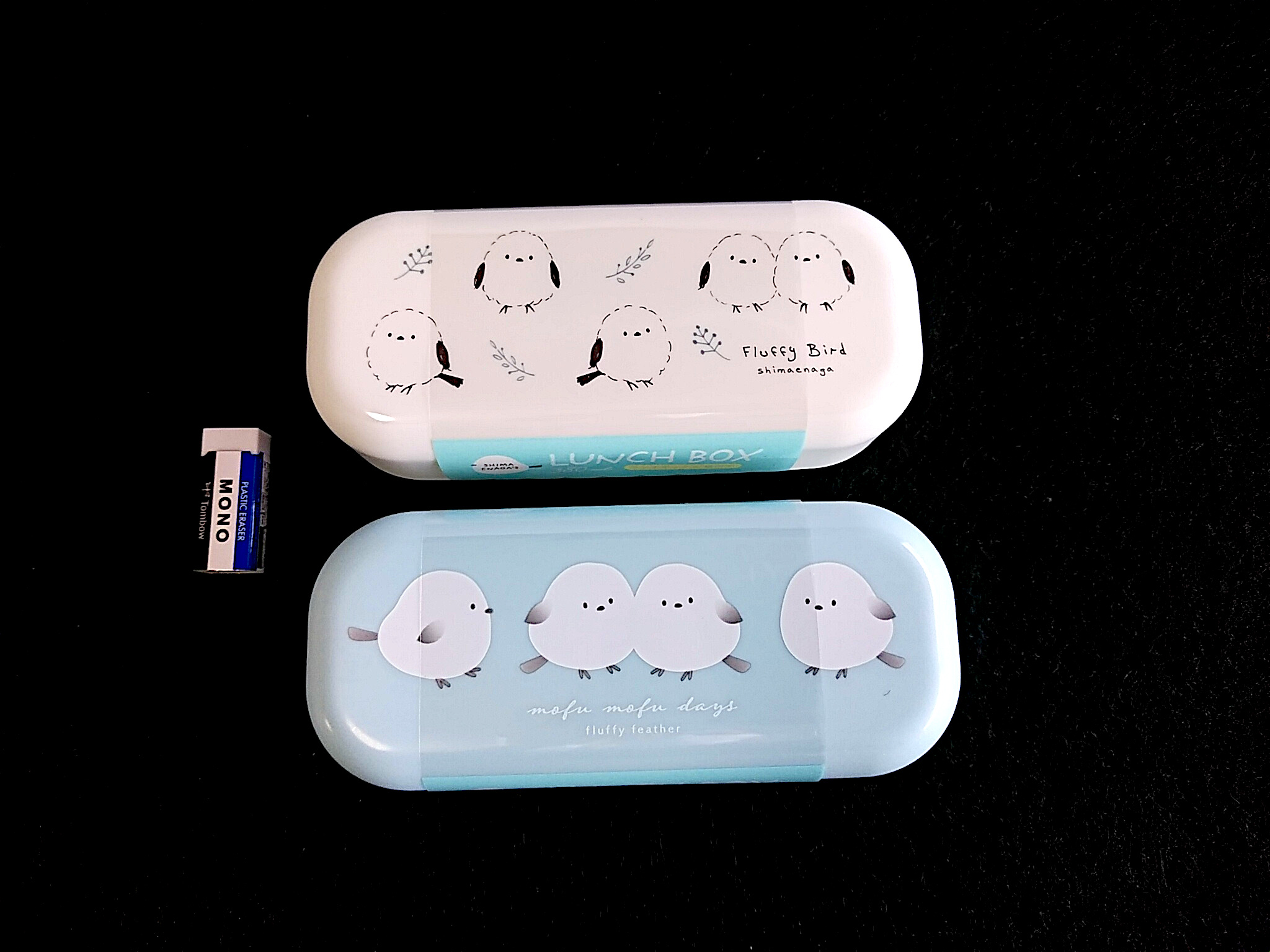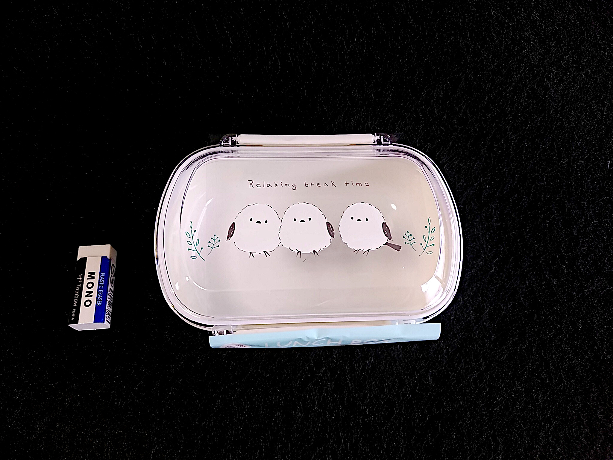 蓋にシマエナガがプリントされた弁当箱です。