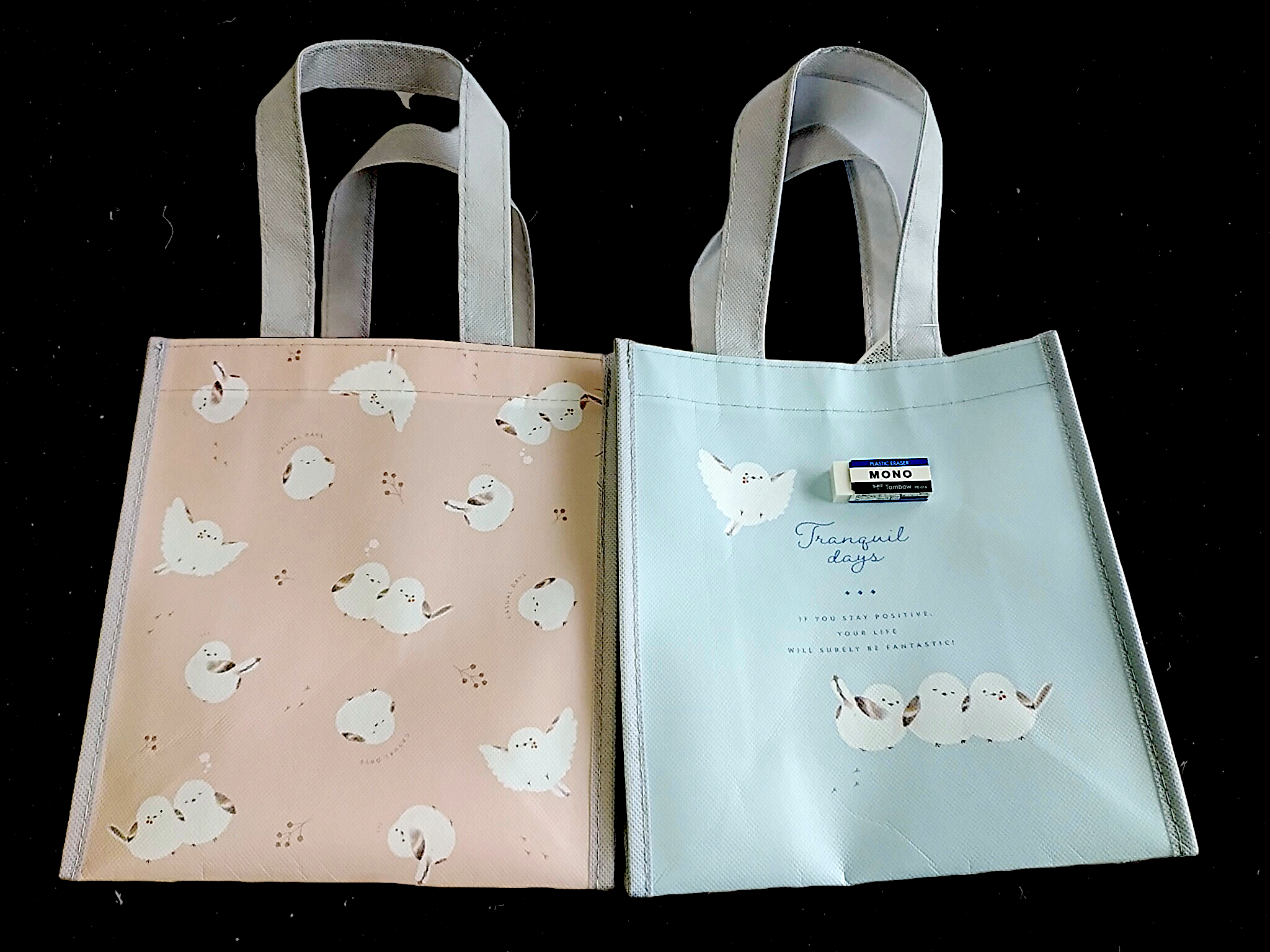 不織布で作られたバッグ、二種類です。