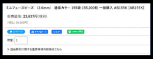 『ミニフューズビーズ (2.6mm) 通常カラー 155袋 155,000粒 一括購入 AB155K [AB155K]』は26,000円のため、むしろ350円安いのです。