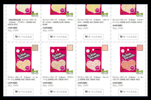 ミニフューズビーズを販売しているネットショップ・ピクセルピコでは、ほぼ全ての色が1袋170円です。